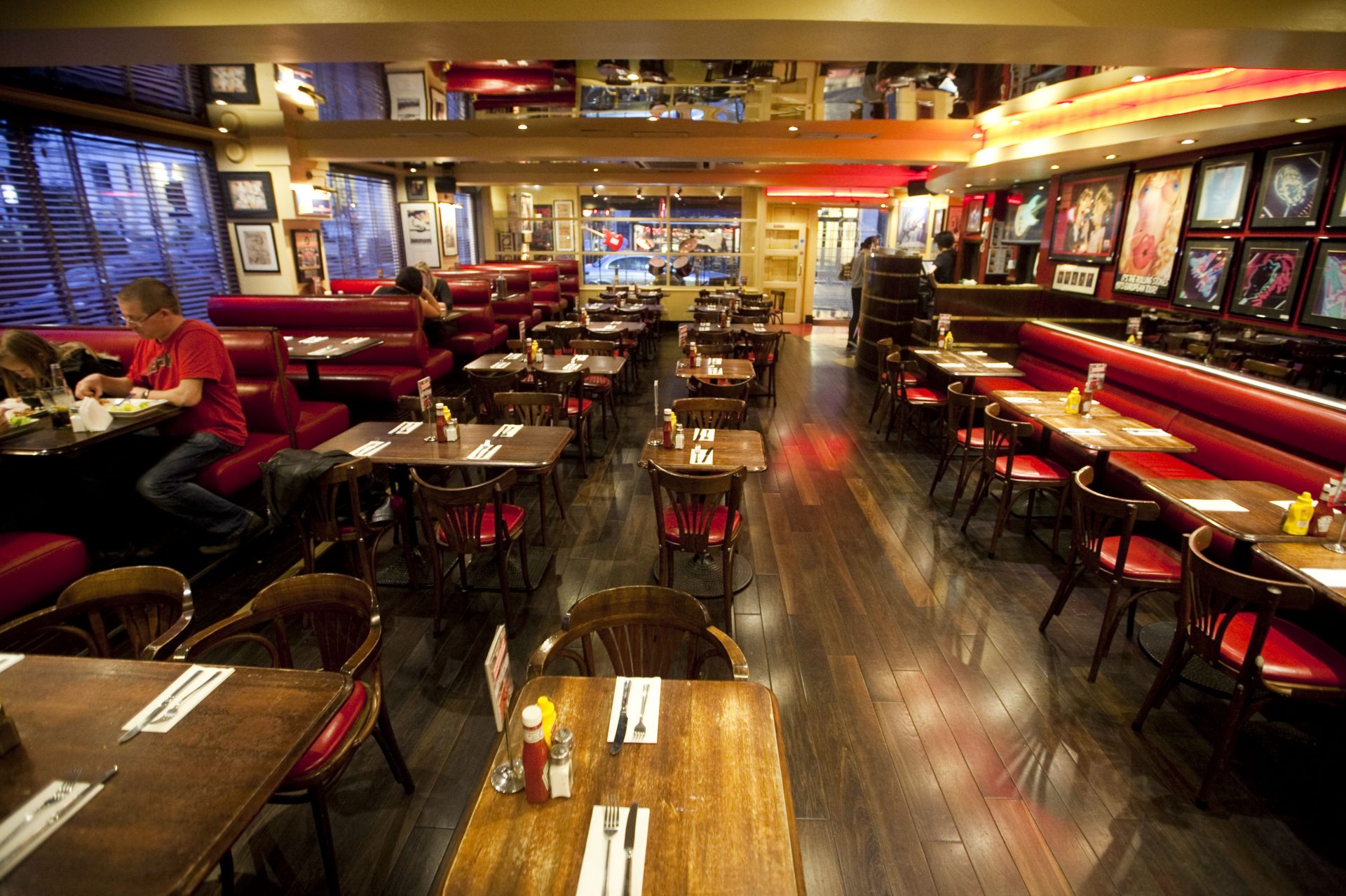 Fuori le linguacce rosse! Su, su… siamo da “Sticky Fingers Restaurant” e se il nome non vi ricorda un leggendario album rock bhè, non siete degni di metterci piede! Parola di fans. Ad aprirlo questa volta è stato l’ex membro dei Rolling Stones, Bill Wyman. Musica e cibo americano, un classico del rock, peccato che siamo a Londra, in una delle zone più chic. Pieno di memorabilia degli Stones offre un’ottima selezione di birre e la colonna sonora rock è naturalmente assicurata. Come dicevamo siamo nel cuore della metropoli, in uno dei quartieri più cari e cool del paese: Phillimore Gardens, Kensington. I prezzi sono nella media londinese e se volete gustarvi un piatto di carne ben cotta con chips e salsa piccante sedetevi su questi divanetti in pelle, che fanno molto Diner anni ’50!